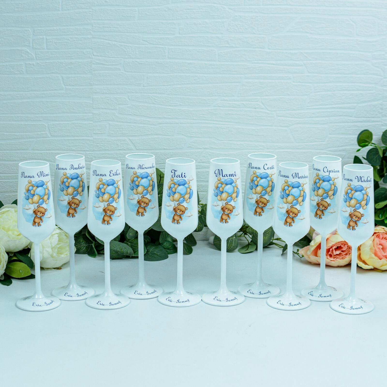 Pahare botez ursulet cu baloane bleo – Eleganță și Personalizare pentru Evenimente Speciale