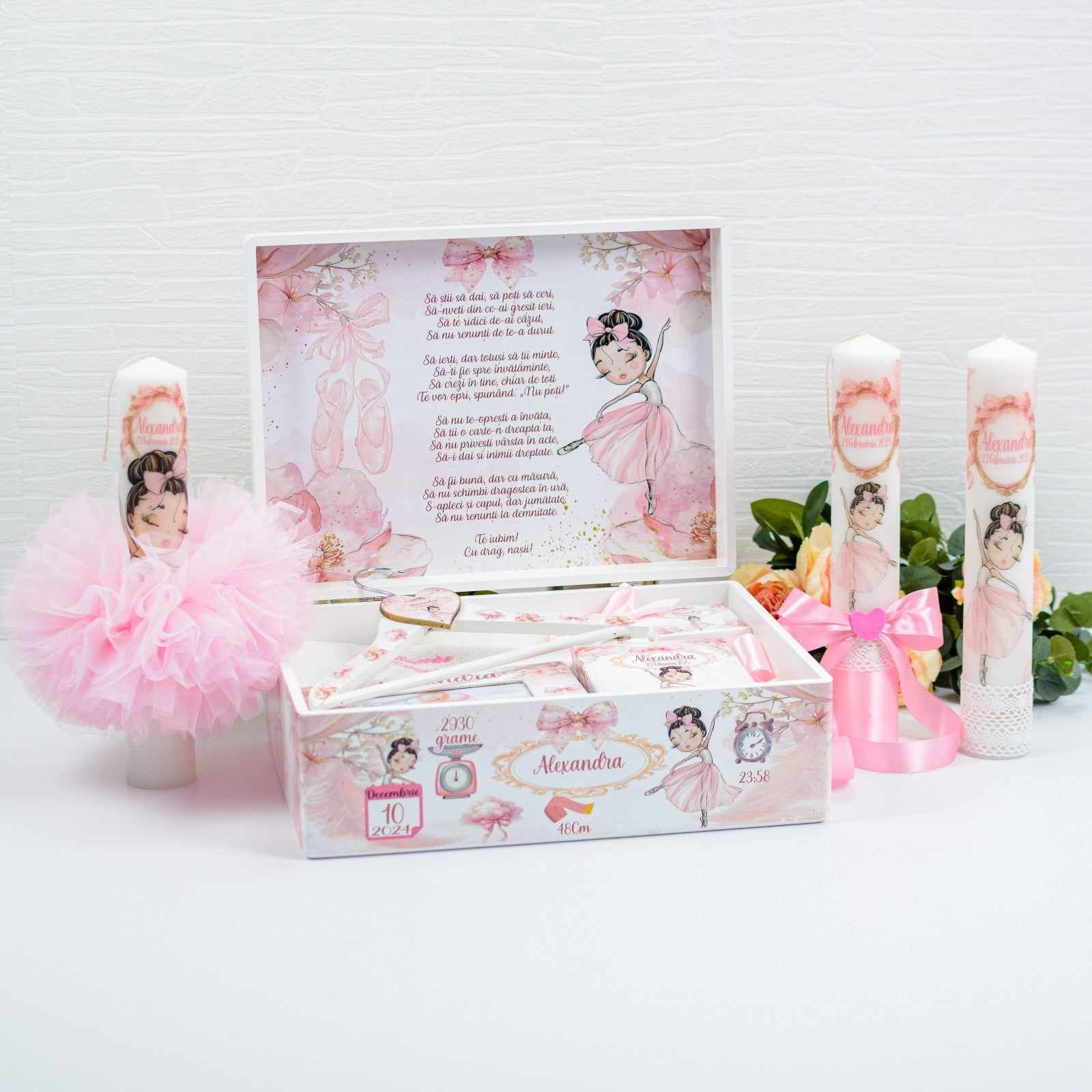 Comandă acum Trusoul Balerina Gingașă - Eleganță și Gingășie pentru Ziua Botezului pentru o experiență de neuitat la botezul copilului tău!