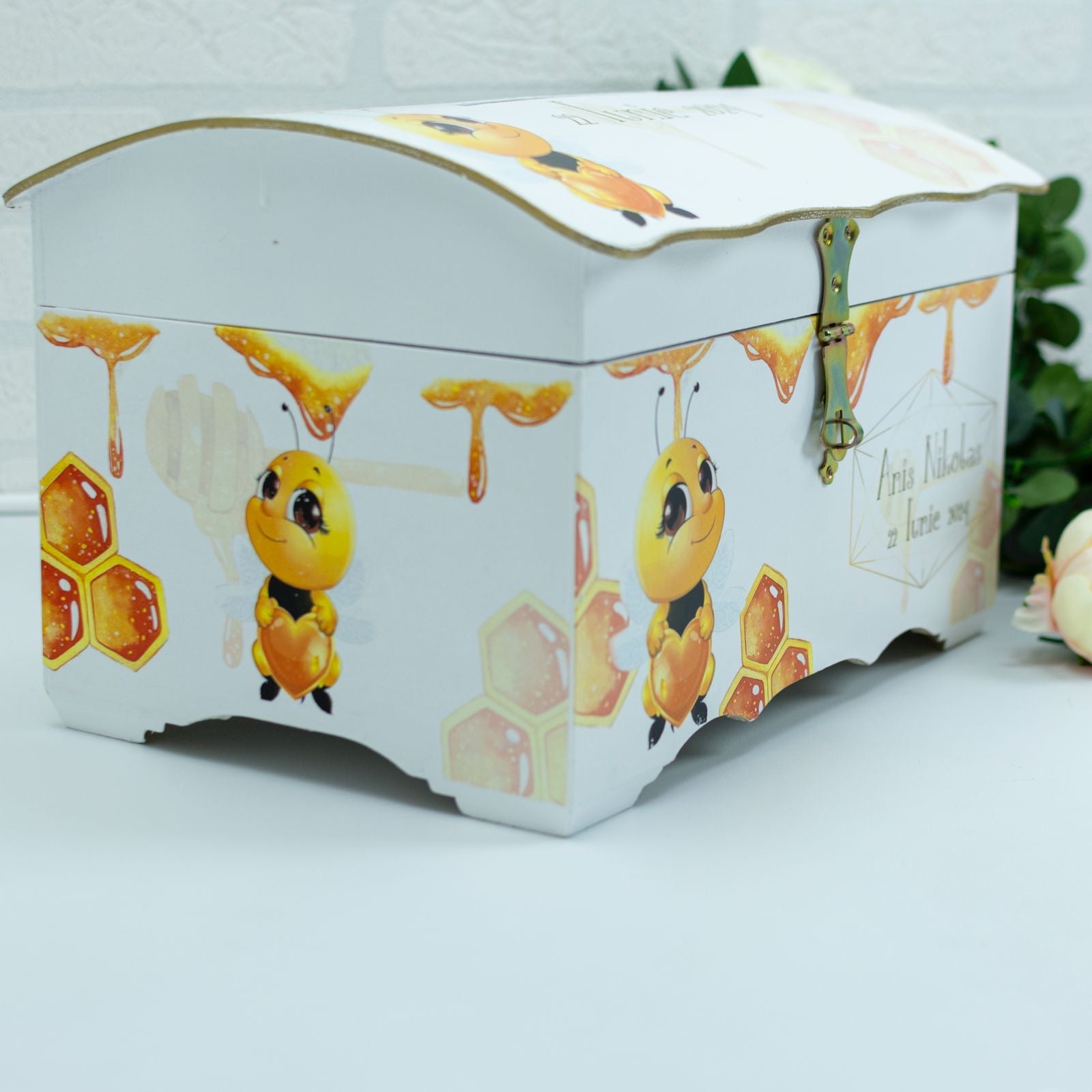 Cu acest Cufar bani Albinuță de la RoHandWork , fiecare copil are ocazia de a adăuga un element tradițional, elegant și unic în ziua lor specială. Pentru a comanda acest cufăr personalizat, vizitați site-ul nostru ușor de utilizat, www.rohandwork.ro, și alegeți opțiunile de personalizare care vă reprezintă pe voi și pe iubirea voastră.