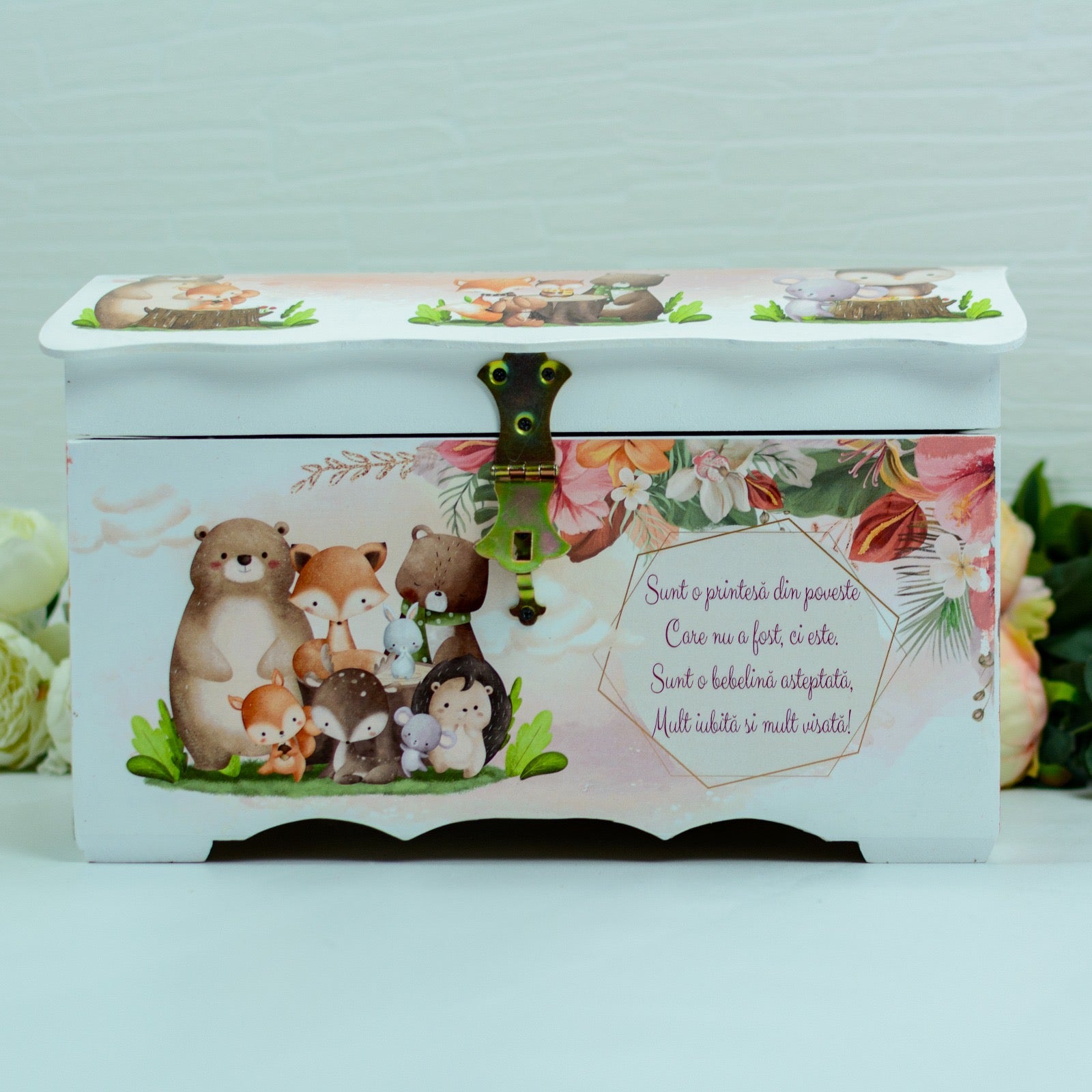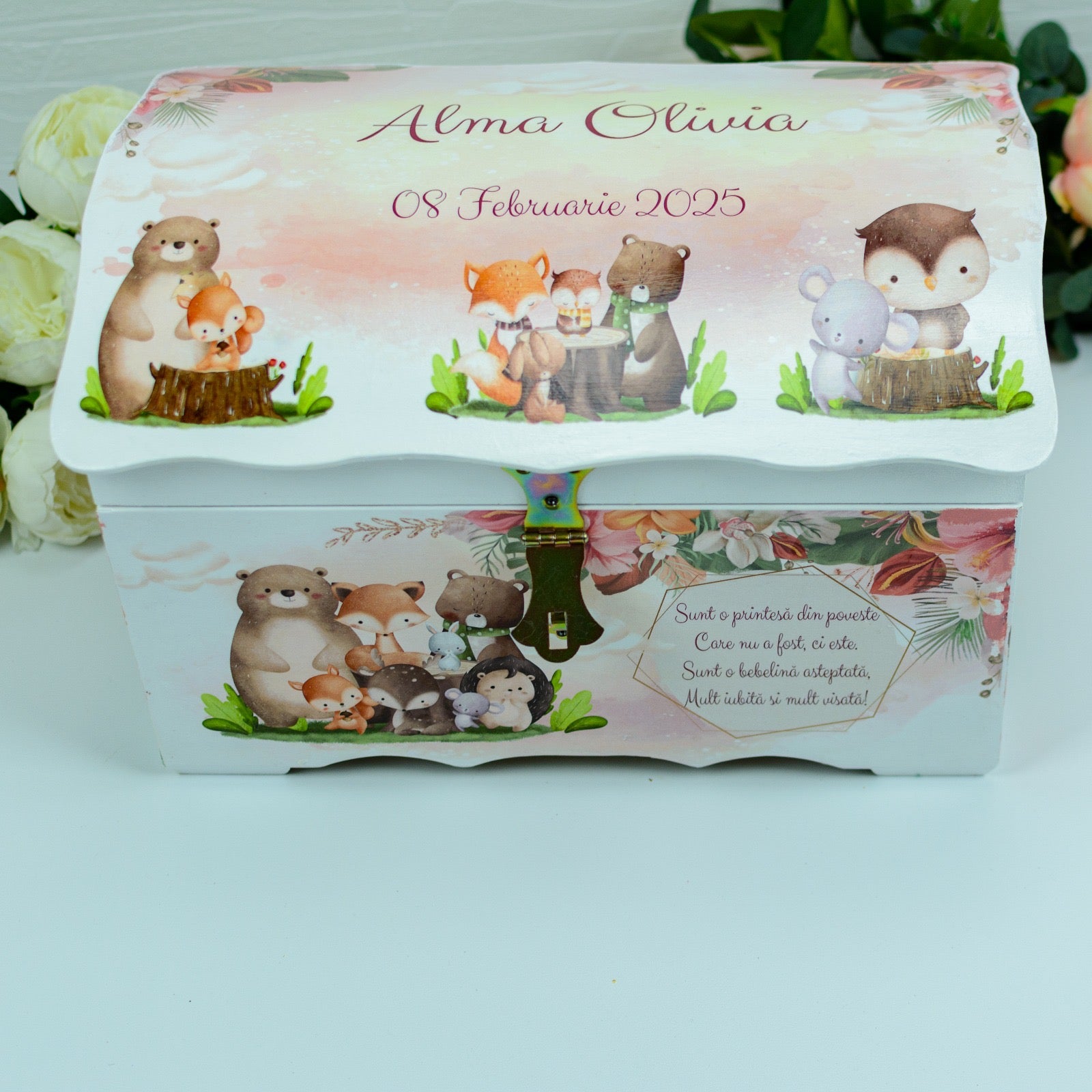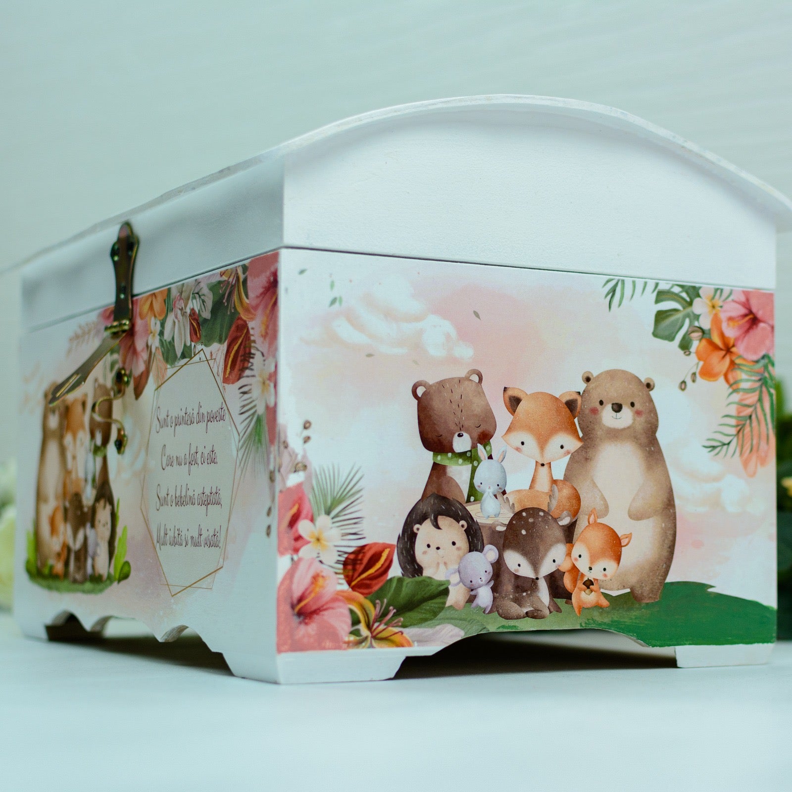 La RoHandWork , înțelegem că fiecare botez este unic, iar cufărul de botez trebuie să reflecte personalitatea și stilul copilului. Cu acest Cufar bani botez Animalute din padure de la RoHandWork , fiecare copil are ocazia de a adăuga un element tradițional, elegant și unic în ziua lor specială. Pentru a comanda acest cufăr personalizat, vizitați site-ul nostru ușor de utilizat, www.rohandwork.ro, și alegeți opțiunile de personalizare care vă reprezintă pe voi și pe iubirea voastră.