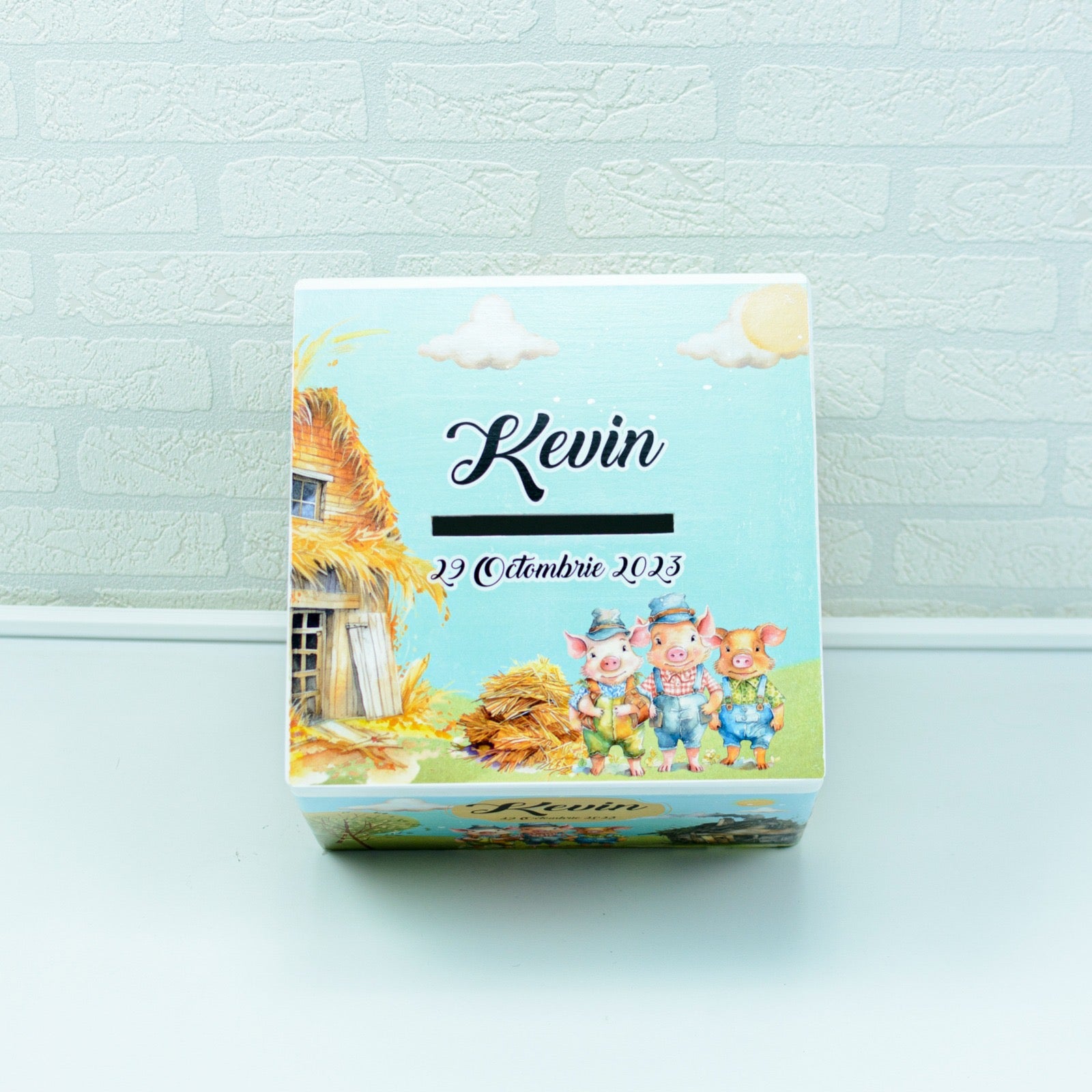 La RoHandWork , înțelegem că fiecare botez este unic, iar cufărul de botez trebuie să reflecte personalitatea și stilul copilului. Cu acest Cufar patrat bani botez Cei 3 Purcelusi de la RoHandWork , fiecare copil are ocazia de a adăuga un element tradițional, elegant și unic în ziua lor specială. Pentru a comanda acest cufăr personalizat, vizitați site-ul nostru ușor de utilizat, www.rohandwork.ro, și alegeți opțiunile de personalizare care vă reprezintă pe voi și pe iubirea voastră.