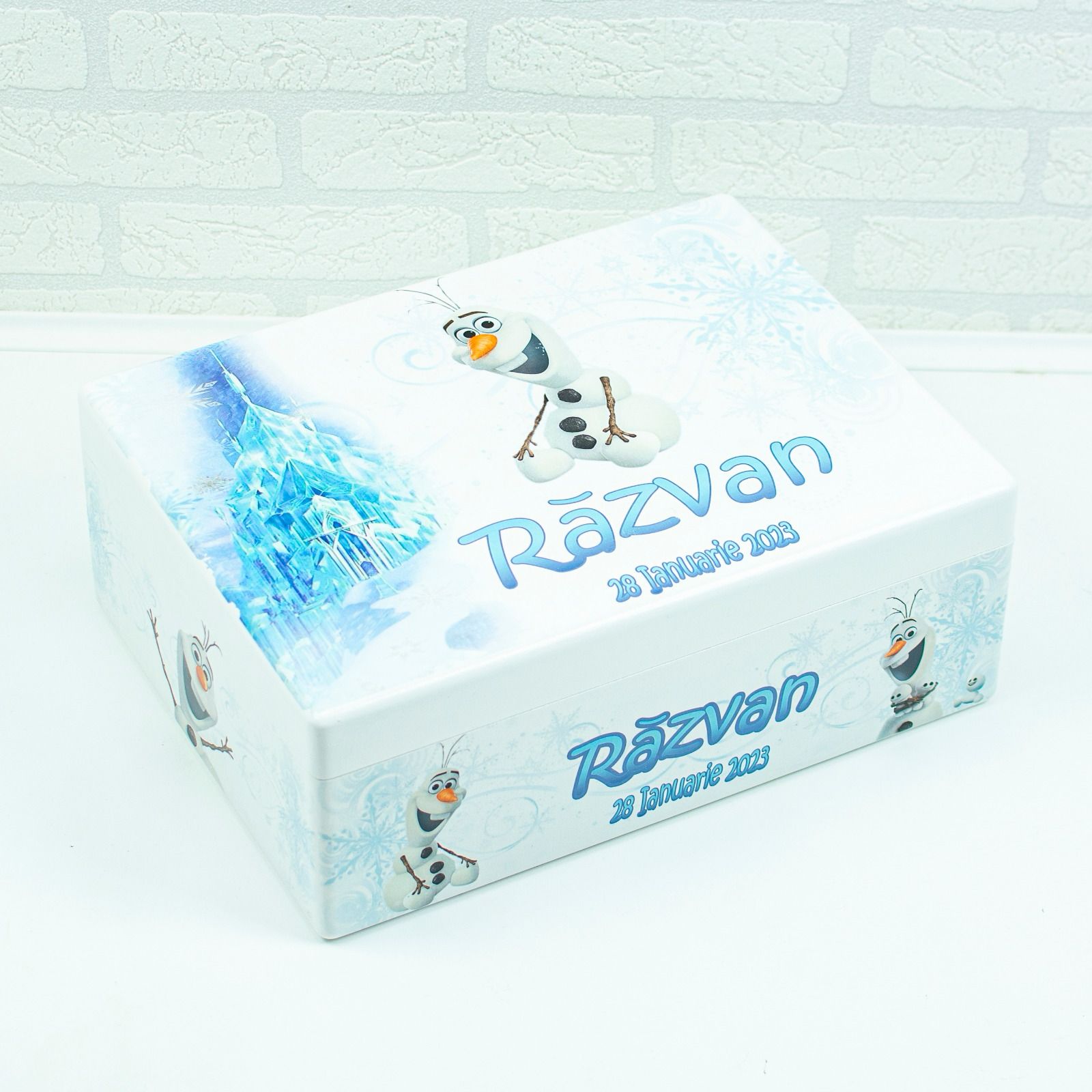 La RoHandWork, înțelegem că fiecare copil și fiecare familie este unică. De aceea, oferim Cutie de amintiri Olaf personalizată pentru a se potrivi cu preferințele și tematica fiecărei familii: