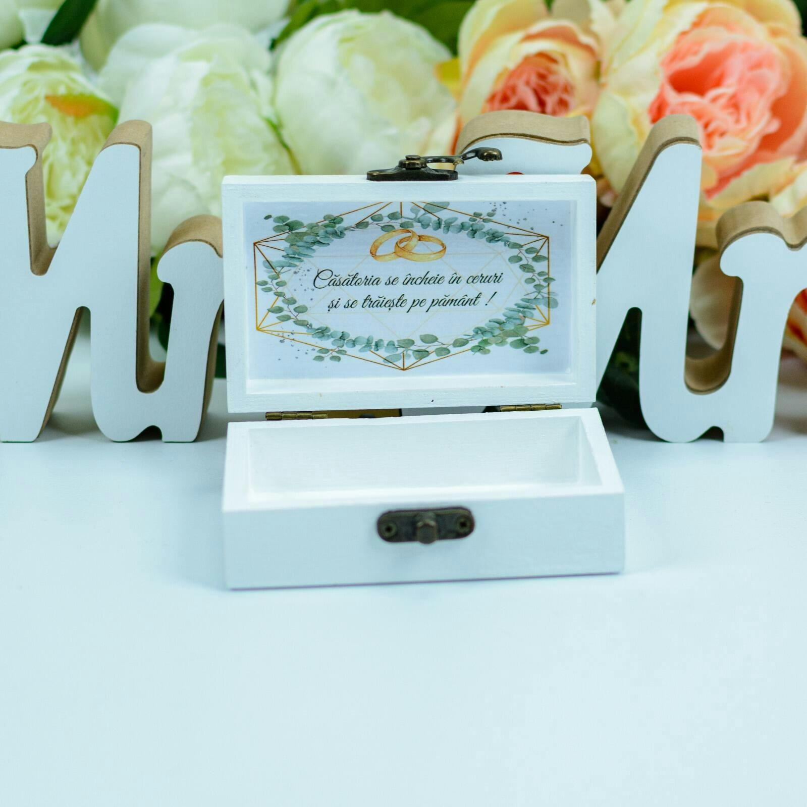 - Data Nuntii: Păstrați-vă data specială mereu în minte cu data nuntii gravată pe cutie.