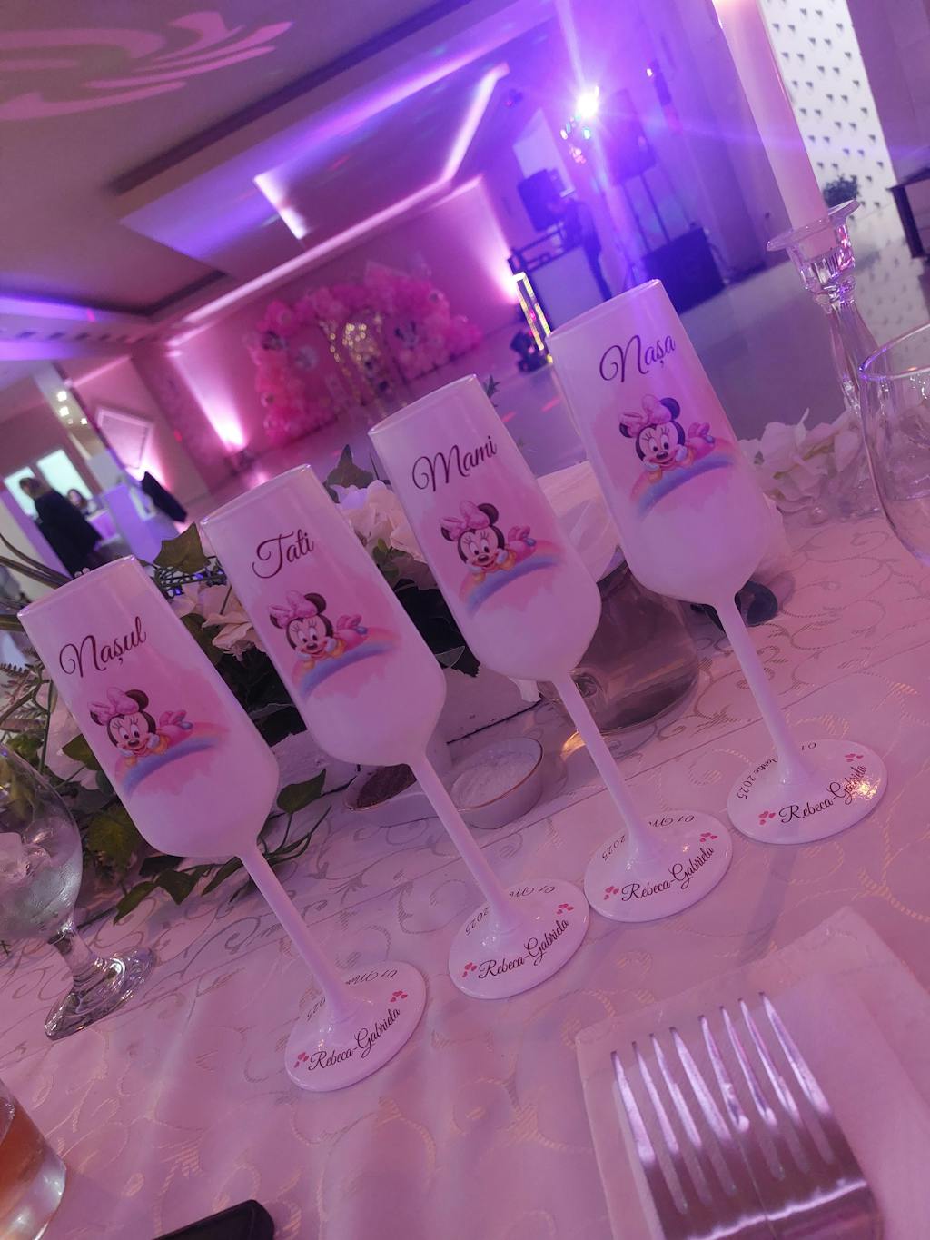 Pahare botez Minnie pe curcubeu – Eleganță și Personalizare pentru Evenimente Speciale