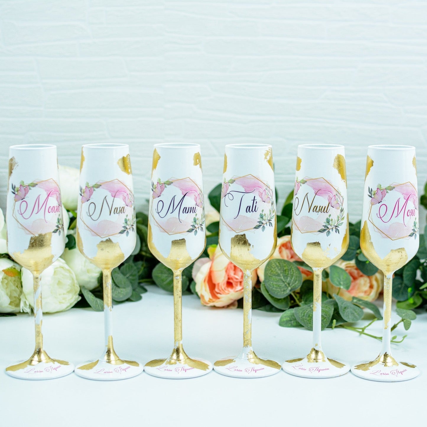 Adaugă un strop de magie ceremoniei de botez cu acest set de pahare delicate, decorate manual cu fluturași roz și accente de foiță de aur. Fiecare pahar este realizat cu grijă în atelierul nostru, pentru ca momentul botezului să fie cu adevărat unic și plin de emoție.