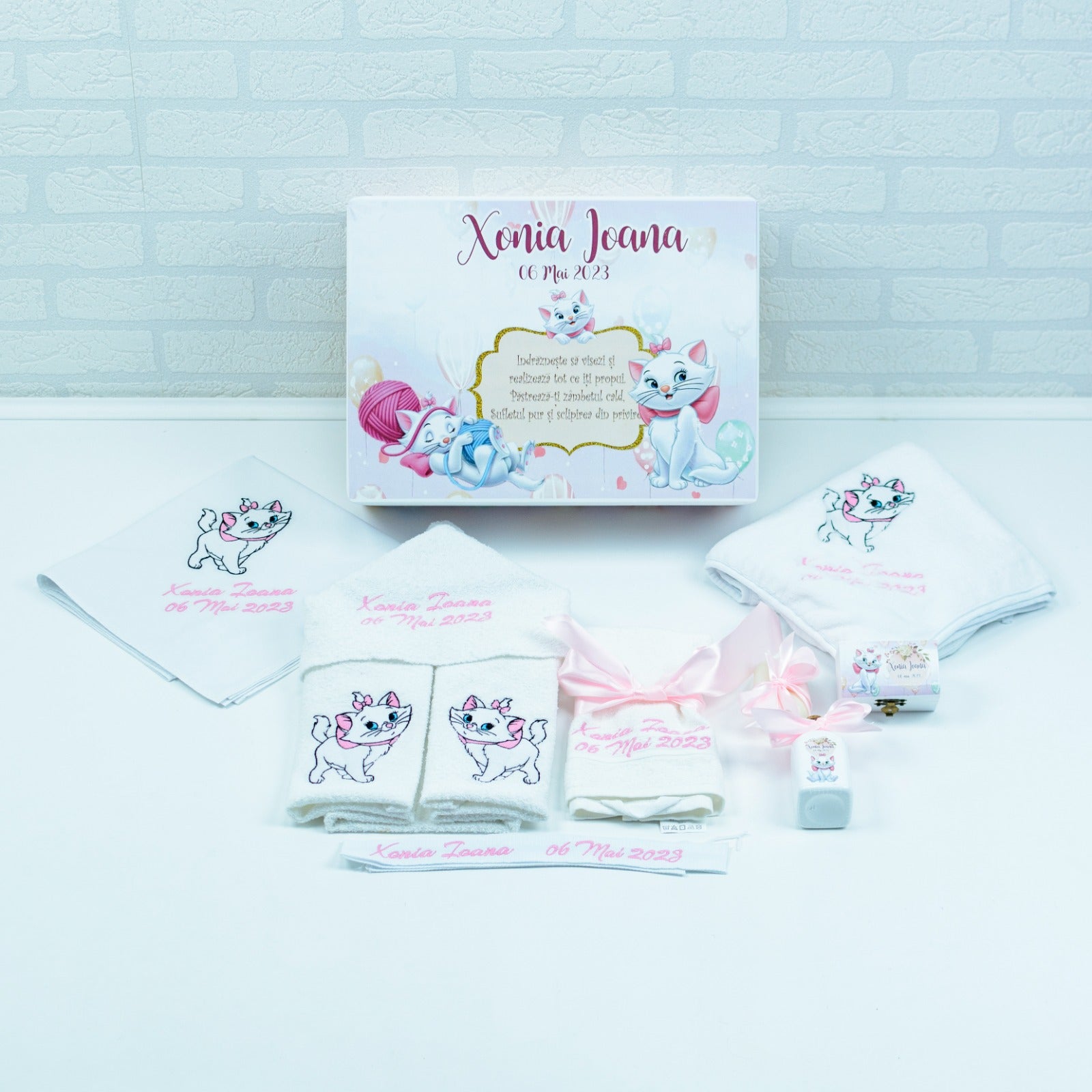 Comandă acum Setul Set trusou botez Pisicuta Marie 1 pentru o experiență de neuitat la botezul copilului tău!