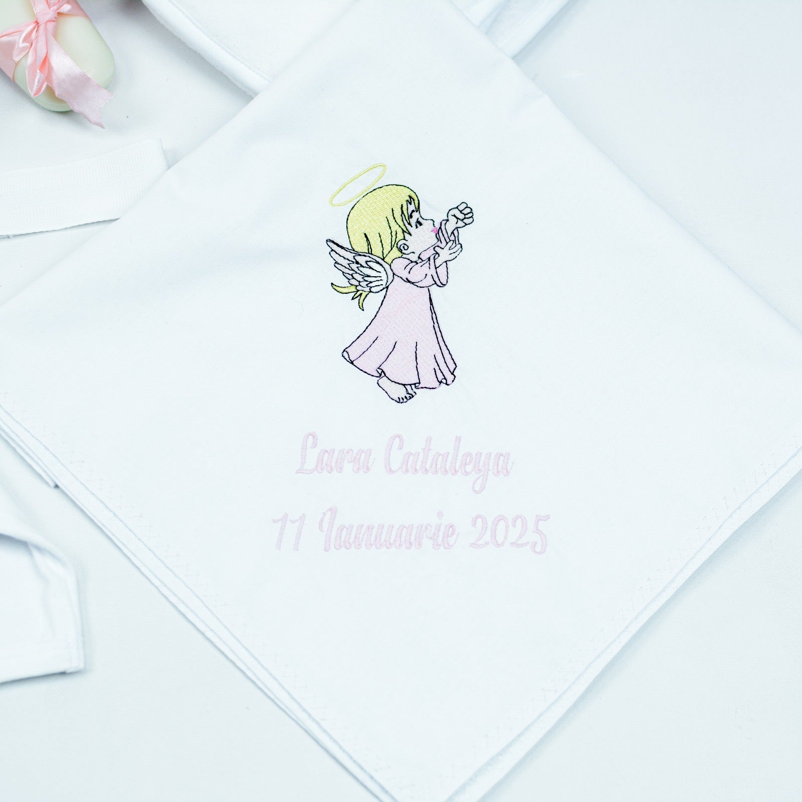 - Fașă de botez, personalizată cu grijă pentru un simbol tradițional autentic.